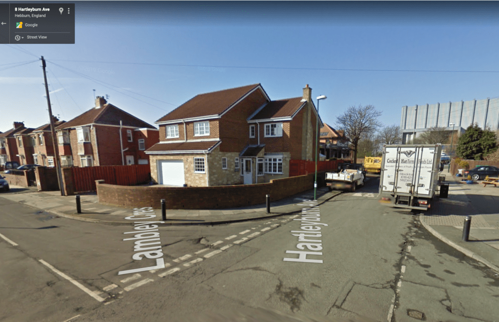 Where this nice house stands, on the corner of Hartleyburn Avenue and Lambley Crescent, used to be one of the places we would regularly play as young children. If you look at the photograph above, right next to the driveway of the house, between it and the next house along, there is another driveway. This leads to the loading dock of the old Co-Op building, presumably now the loading dock for the flooring supplies shop. Next to that driveway used to be a large (big enough to build a house on!) patch of unused land surrounded by a high wall. Completely overgrown with long grass and plants, we used to call it “the Store Gardens” and it would represent the Jungle or the surface of an alien planet in many of our childhood games. If we were exceptionally daring, we would try to climb up on top of the wall, though any passing adult would have told us to get down “before you break your bloody neck!”