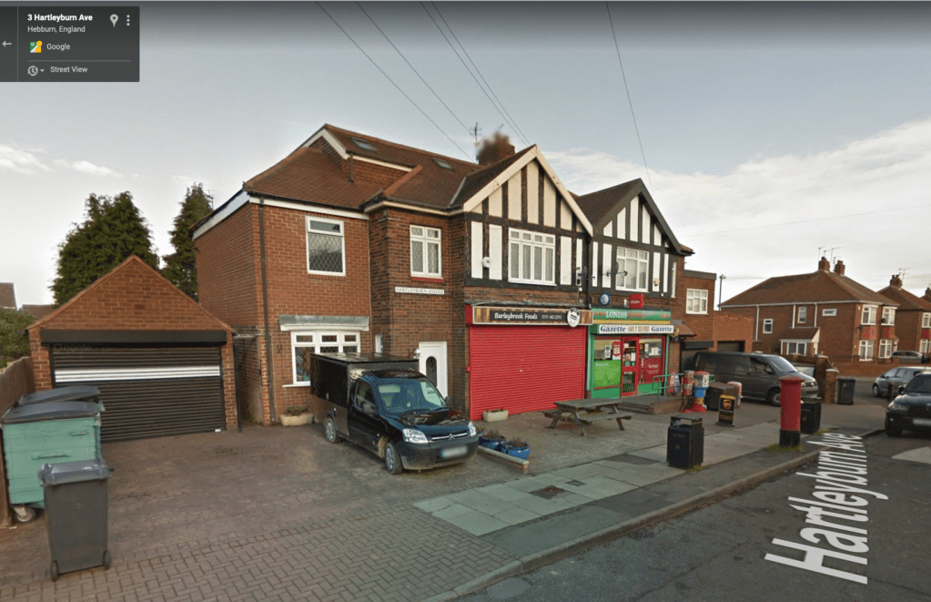 The right-hand shop was always a newsagent, first Ashman’s, then Ramshaw’s, then owned by another family who never changed the Ramshaw sign. I also remember it being called “Hartleyburn Newsagency” at some point. This was where I would go to get my comics as a youngster. As well as newspapers, comics and magazines, it sold sweets and bakery goods and other groceries such as boiled ham and pease pudding. I think they also may have had a small selection of gift-type items and toys. I can remember us getting our bread from “the corner shop” as we called it, and the aforementioned bread being extremely good!