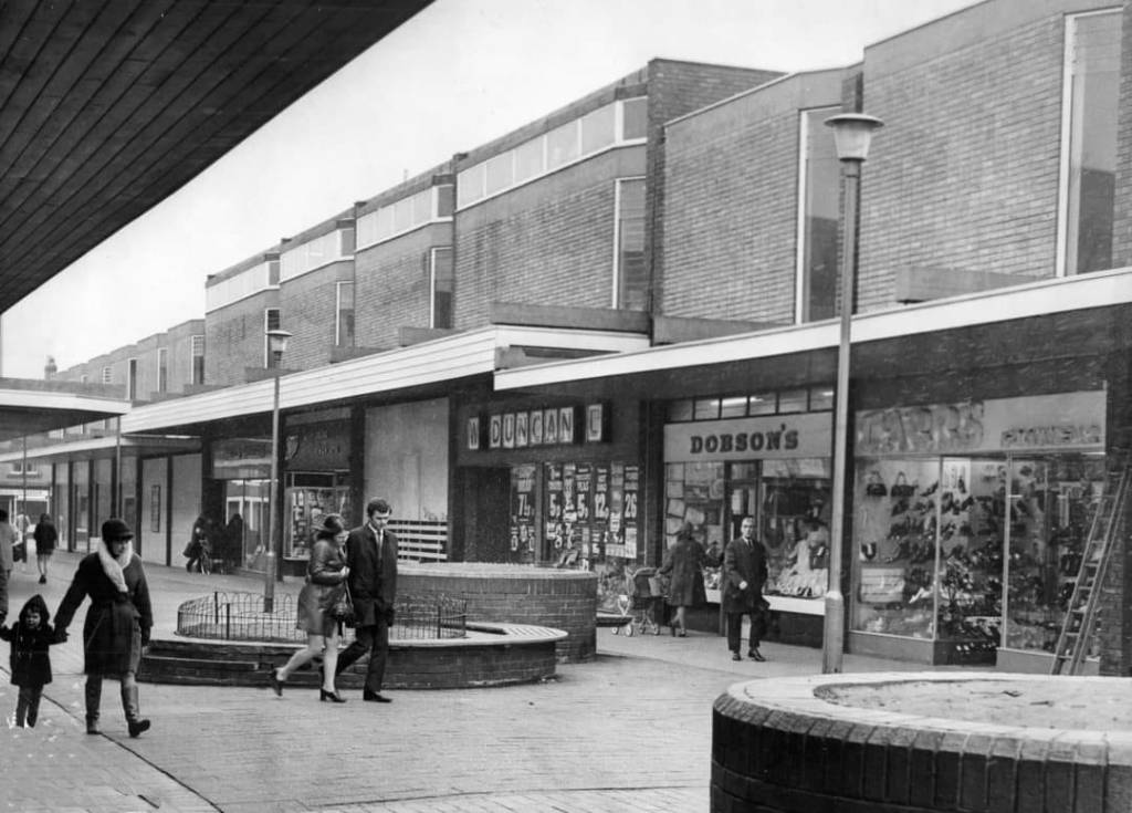 When I was a child in the 1970s, the Newtown shopping centre was bustling. The photograph below from 1971 is looking towards Station Road. You can see Walter Willson’s, Boots the Chemist (which is still there at the time of writing), Duncan’s supermarket, Dobson’s, which sold clothing, and Carr’s shoe shop. All the way in the back of the photograph, on Station Road, that looks like Elsie Ferguson’s women’s clothing shop.