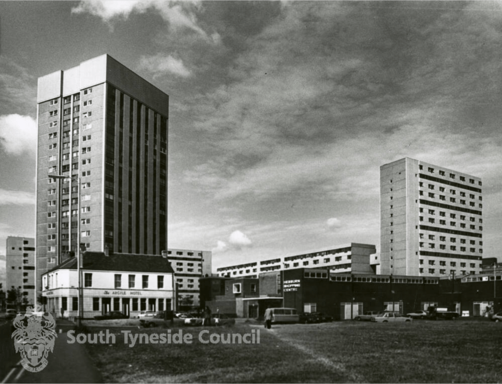 This photograph shows the Shopping Centre looking from Victoria Road West in 1979. You can see the scale of the new development as Durham Court, Westmorland Court, Cumberland Court and Northumberland Court are all visible. In the foreground is the Argyle Hotel, another survivor from the original Newtown.