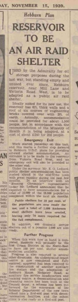 The article below details the construction of the air-raid shelter and again mentions that the reservoir was used for the storage of oil during World War I:
