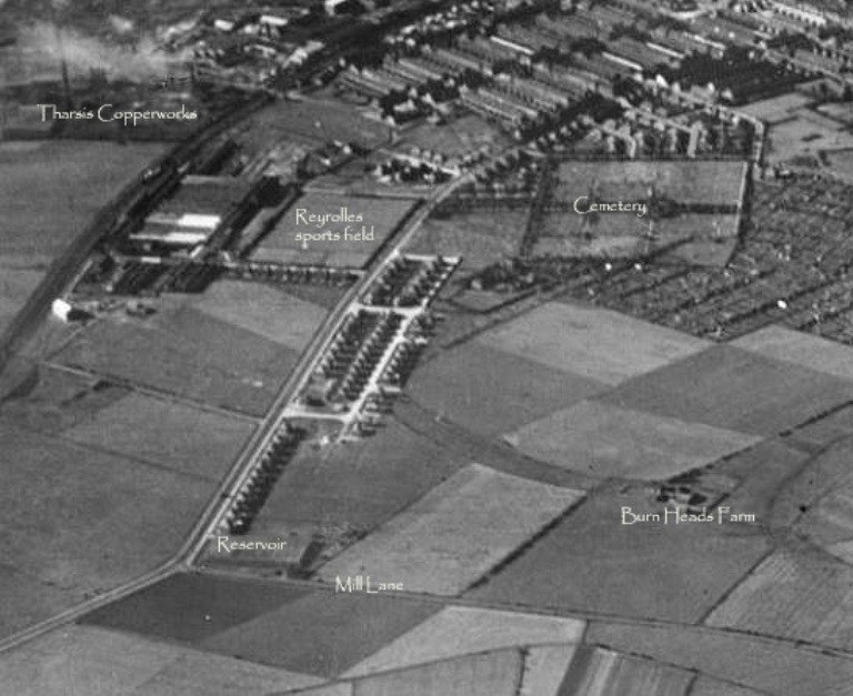 Here is an image looking down Mill Lane from the corner of Victoria Road West. The reservoir would have covered the whole of the green area and St. Joseph’s Court behind the trees.