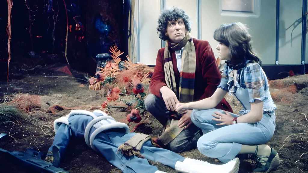 Unusually, this story sees the Doctor getting into fisticuffs with the villains and even brandishing a pistol at one point. There’s no shortage of action and excitement, and even if the resolution of the story is a bit of a let-down (stock footage of fighter jets firing missiles representing an attack on the now giant Krynoid by UNIT), the explosion of the mansion and Krynoid is a satisfying climax. The Seeds of Doom is a worthy closer for the Fourth Doctor’s second series.