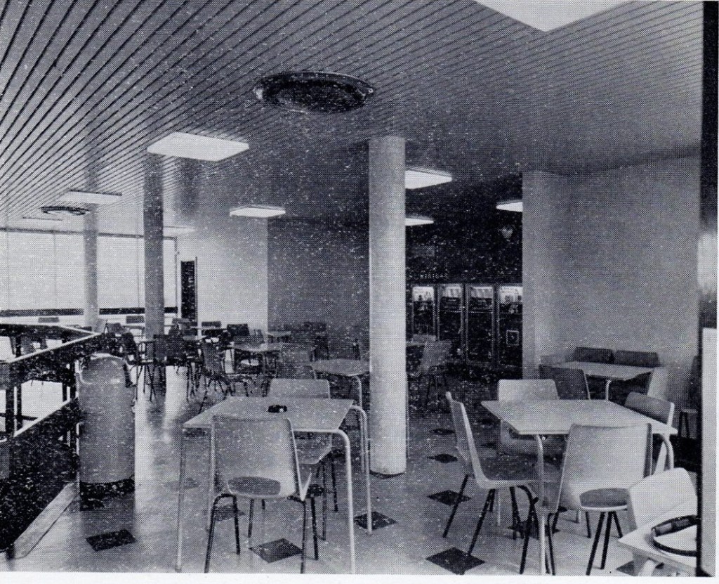 I remember an advertising poster on the wall featuring a red version of the Incredible Hulk proclaiming that “Bovril gives you BEEF!” You could also order hot food from the cafe, like a plate of chips with gravy, but we were never there long enough for that. The photograph below, from the official opening program, shows the cafe: