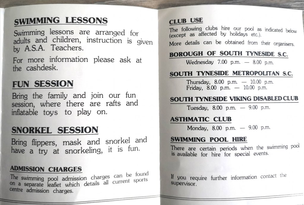 The gallery below shows a leaflet available from the baths during the 1980s showing some of the facilities and classes that were available at the time. As I said earlier, it was a very popular facility and, together with the Community Centre that used to be on Argyle Street in the 80s, provided a lot of recreational opportunities for the people of Hebburn.