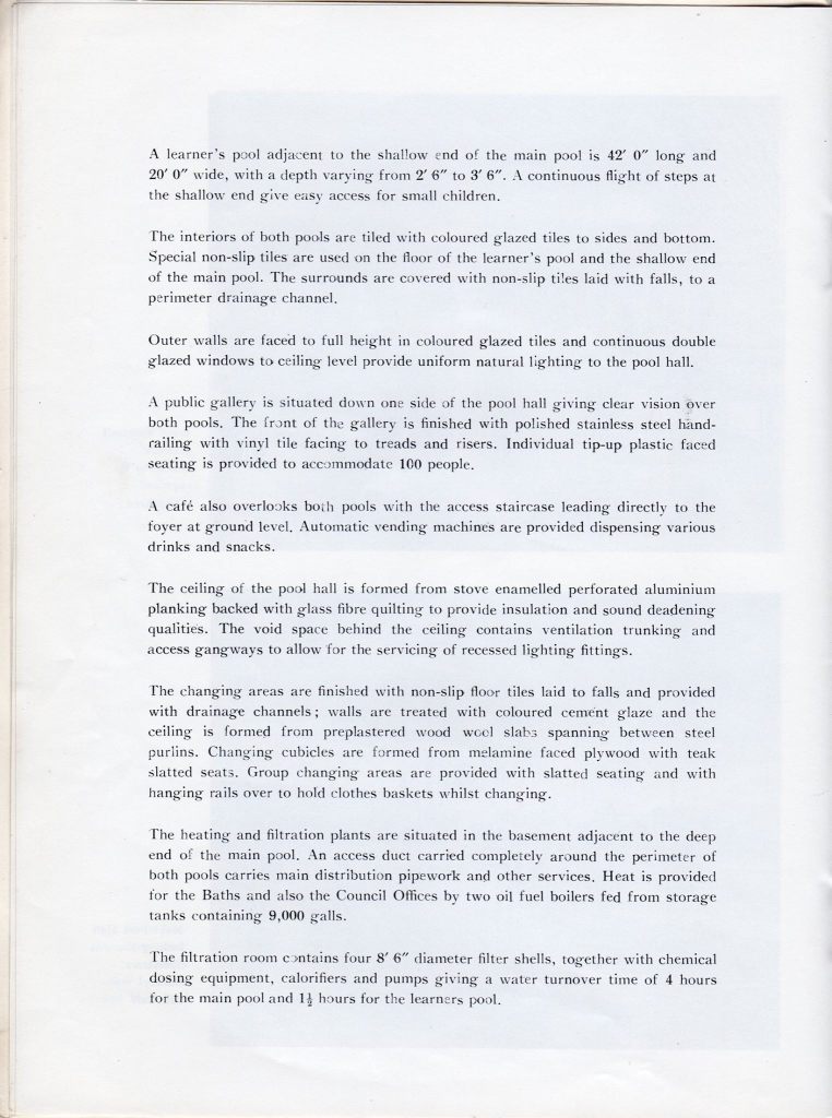 The above photograph gives an idea of how the swimming baths looked around the time I was learning to swim, circa 1973. It was a relatively new building at the time along with the Council Offices, having been built in the mid-60s and officially opening in 1967. The gallery below shows the pages of the official programme for the opening.